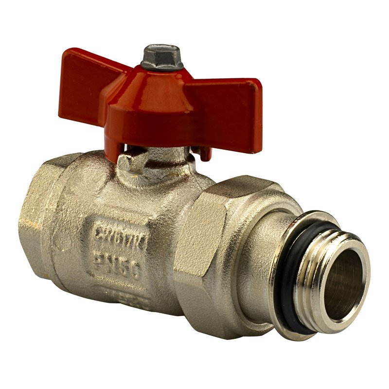 Ivar Robinet sfera drept fluture, 1 1/4", cu olandez, maneta rosie, AC 654 NR